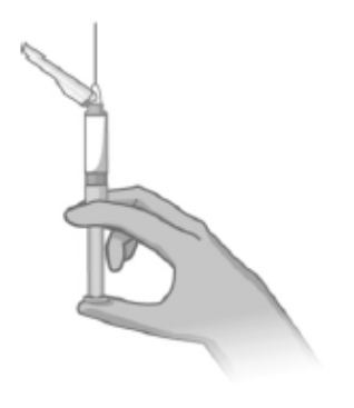 - Kun olet valmis antamaan injektion, pidä ruiskua pystysuorassa ja irrota neulan korkki vetämällä suoraan ylöspäin. Älä kierrä neulan korkkia, sillä se voi irrottaa neulan ruiskusta.