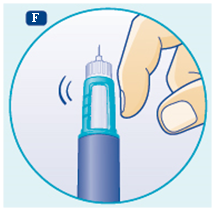 F Pidä kynää neula ylöspäin. Napauta kynän yläosaa muutaman kerran, jotta mahdolliset ilmakuplat nousevat yläosaan. |  |