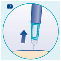 J Poista neula ihosta. Tämän jälkeen voit vielä nähdä kasvuhormonipisaran neulan kärjessä. Se on normaalia eikä sillä ole vaikutusta juuri saamaasi annokseen. |  |