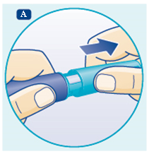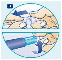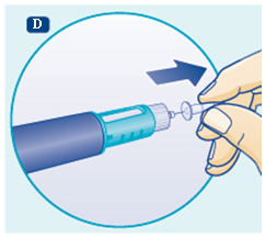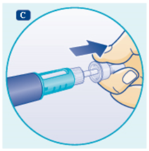C Vedä neulan ulompi suojus pois ja säilytä se. Tarvitset sitä pistoksen jälkeen voidaksesi poistaa neulan kynästä oikein. |  |