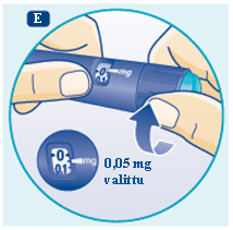 E Kierrä annosvalitsinta valitaksesi pienimmän annoksen, 0,05 mg. |  |