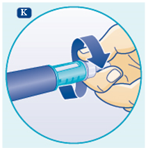 K Laita neulan ulompi suojus varovasti takaisin neulan päälle koskematta neulaan. Kierrä neula irti ja hävitä se huolellisesti lääkäriltä tai sairaanhoitajalta saamiesi ohjeiden mukaisesti. Laita kynän suojus takaisin paikoilleen jokaisen käytön jälkeen. Kun kynä on tyhjä, hävitä se ilman neulaa lääkäriltä tai sairaanhoitajalta saamiesi ohjeiden ja paikallisten vaatimusten mukaan. |  |