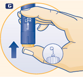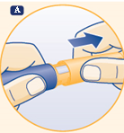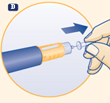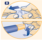 C Vedä neulan ulompi suojus pois ja säilytä se. Tarvitset sitä pistoksen jälkeen voidaksesi poistaa neulan kynästä oikein. |  |