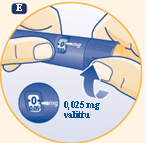 E Kierrä annosvalitsinta valitaksesi pienimmän annoksen, 0,025 mg. |  |