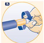 K Laita neulan ulompi suojus varovasti takaisin neulan päälle koskematta neulaan. Kierrä neula irti ja hävitä se huolellisesti lääkäriltä tai sairaanhoitajalta saamiesi ohjeiden mukaisesti. Laita kynän suojus takaisin paikoilleen jokaisen käytön jälkeen. Kun kynä on tyhjä, hävitä se ilman neulaa lääkäriltä tai sairaanhoitajalta saamiesi ohjeiden ja paikallisten vaatimusten mukaan. |  |