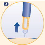 J Poista neula ihosta. Tämän jälkeen voit vielä nähdä kasvuhormonipisaran neulan kärjessä. Se on normaalia eikä sillä ole vaikutusta juuri saamaasi annokseen. |  |