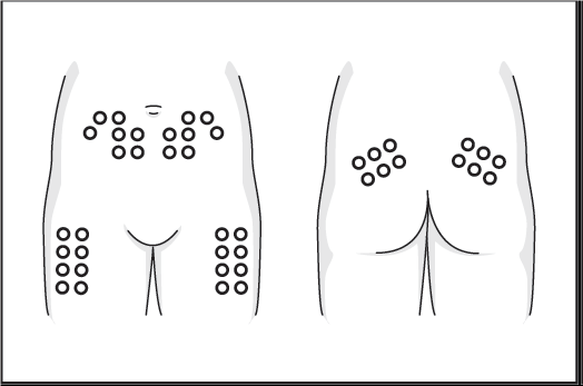 7. Kuivaa mahdollinen veri. Vaihda vuorotellen pistospaikkaa, aloita esim. vatsan oikealta puolelta ja siirry vasemmalle.