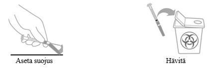 Tarkista silmämääräisesti, että neula on täysin kiinnittynyt neulansuojuslaitteeseen ja hävitä neula.