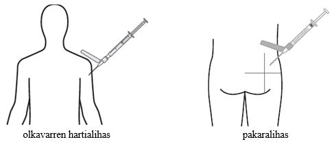 Muista vaihtaa injektiokohtia kahden pakaralihaksen tai olkavarren hartialihaksen välillä.