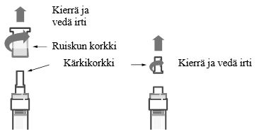 *Jos tunnet vastusta ilman poistamisessa tai jos se on hankalaa, tarkista, että mäntä on kierretty päätepisteeseensä saakka.