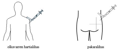 Injisoi vain syvään pakaralihakseen tai olkavarren hartialihakseen.