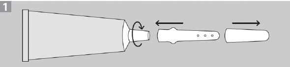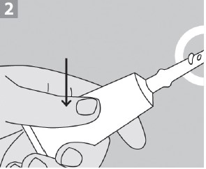 1. Asetin kierretään kiinni tuubiin ja sen kärjen suojus irrotetaan.