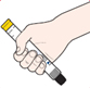 | 1. Ota Jext-injektori vahvempaan käteesi (käteen, jolla kirjoitat), niin että peukalosi on lähinnä keltaista korkkia. |