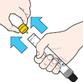 | 2. Vedä keltainen korkki pois vapaalla kädelläsi. |