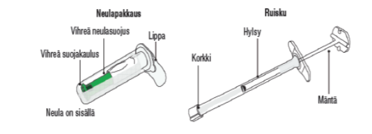 Kotelo sisältää yhden 0,5 ml:n ruiskun ja yhden turvaneulan (1,2 mm x 20 mm) samassa pakkauksessa.