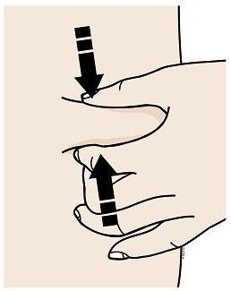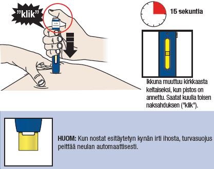 Tärkeää: On tärkeää, että iho on venytettynä tai puristettuna sormien väliin, kun annos pistetään.