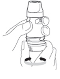 - Kierrä sinistä annostelurengasta ensin yhteen suuntaan niin pitkälle kuin se menee ja sitten takaisin toiseen suuntaan jälleen niin pitkälle kuin se menee (sillä, mihin suuntaan kierrät ensin, ei ole merkitystä). Kiertämisen aikana kuulet naksahduksen.
