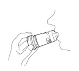 5. Aseta suukappale varovasti hampaiden väliin ja sulje huulet. Hengitä voimakkaasti ja syvään sisään suun kautta. Älä pure suukappaletta.