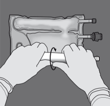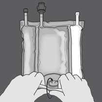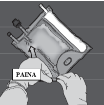- Älä kytke pusseja sarjaan välttääksesi ilmaembolismin riskin ensimmäiseen pussiin mahdollisesti jääneestä ilmasta johtuen.