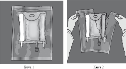 Valmisteen käyttämistä suositellaan välittömästi, kun osastojen väliset saumat on avattu. Valmistetta ei saa säilyttää myöhempää infuusiota varten.