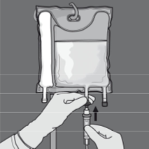 - Aseta infuusiosetin piikki tiiviisti annosteluporttiin.