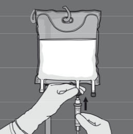 - Lävistä injektioportti ja injisoi lisäykset käyttämällä injektioneulaa tai käyttökuntoon saattamiseen tarkoitettavaa laitetta.