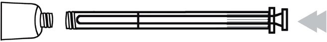 2. Ota kanyyli ja mäntä pakkauksesta. Työnnä valkoinen mäntä koko mitaltaan kanyyliin. Kierrä kanyyli kiinni tuubin suuhun.