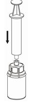 8. Kun ruiskun mäntä on sisään painettuna, käännä laite ja injektiopullo ylösalaisin ja vedä liuos ruiskuun vetämällä mäntää hitaasti ulospäin.