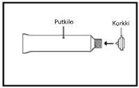 - Tuubin avaaminen: Avaa tuubin korkki ja puhkaise tuubin pään sinetti korkin terävällä päällä.