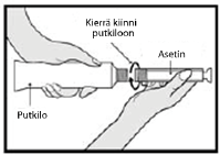 Geelin vapautus: Työnnä hitaasti asettimen mäntää sisään. Samalla geeli vapautuu emättimeen. Jatka työntämistä kunnes mäntä pysähtyy. Näin saat varmasti juuri oikean määrän geeliä emättimeen.
