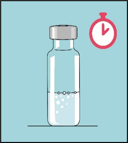Kun kuiva-aine alkaa liueta, laita injektiopullo hetkeksi sivuun, kunnes kuiva-aine on liuennut kokonaan. Kun olet napauttanut pulloa, jotta liukeneminen alkaa, liukeneminen kestää noin kolme minuuttia. | Kunnolla sekoittunut Hepcludex-liuos on kirkasta. Tärkeää! Kokonaan liuenneen Hepcludex-liuoksen on oltava kirkasta, eikä siinä saa olla vaahtoa. Jos liuos näyttää vaahtoavalta tai kellertävältä, anna sen liueta vielä hetki. Jos liuoksessa on kuplia, napauttele injektiopulloa varovasti, kunnes kuplat häviävät. Jos liuoksessa näkyy hiukkasia, kun kuiva-aine on liuennut veteen (kokonaan), älä käytä kyseistä injektiopulloa. Ota yhteyttä lääkäriin tai apteekkiin, josta sait lääkkeen. Käyttökuntoon saatettu Hepcludex on käytettävä välittömästi. | Puhdista Hepcludex-injektiopullon tulppa uudestaan uudella alkoholipitoisella desinfiointilapulla. Anna tulpan kuivua hetki. | |