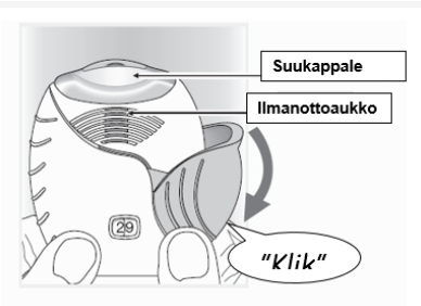 Älä hengitä laitteeseen. - Vie suukappale huulten väliin ja purista huulet tiukasti sen ympärille.