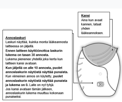 Jos avaat ja suljet laitteen kannen ottamatta lääkettä, menetät yhden annoksen.