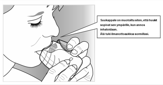 Avaa kansi vasta kun olet valmis inhaloimaan annoksen. Älä ravista laitetta.