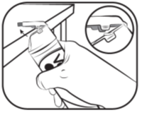 Avataksesi käännettävän korkin helposti käytä sormea, peukaloa, käden syrjää tai aseta korkin kansi pöydän reunaa vasten. Korkin molemmin puolin olevat avaamattomuuden osoittavat kielekkeet rikkoutuvat, kun korkki avataan ensimmäisen kerran. Tarkista, että avaamattomuuden osoittavat kielekkeet eivät ole rikki ennen ensimmäistä käyttökertaa.
