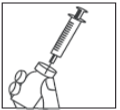 | - Poista neulan suojakorkki. Pidä ruiskua ja neulaa ylöspäin suunnattuina ja napauta kevyesti ruiskun sivupuolta, jotta kaikki ilmakuplat nousevat ylös ruiskun kärkiosaan.