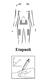| - Lääkäri tai sairaanhoitaja on jo neuvonut sinulle, mihin kohtaan kehoasi voit pistää lääkkeen. Tavalliset kohdat ovat reisi tai alavatsan alue navan alapuolella.