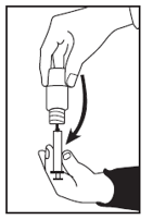 3. Käännä pullo ylösalaisin oraaliruiskun ollessa kiinni pullossa.