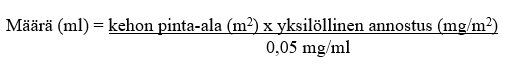 Käyttökuntoon saatettu liuos tulee laimentaa 9 mg/ml (0,9 %) NaCl-infuusionesteellä tai 50 mg/ml (5 %) glukoosi-infuusionesteellä. Tarvittava määrä lasketaan seuraavasti: