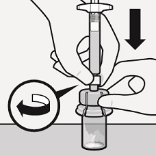 Kiinnitä esitäytetty ruisku injektiopullon liittimeen |