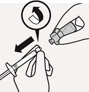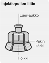 Kiinnitä ruisku injektiopullon liittimeen kiertämällä sitä napakasti myötäpäivään