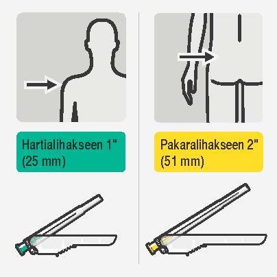 Valitse neula injektiokohdan mukaan (pakara- tai hartialihas). |