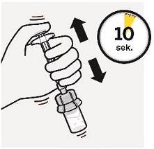 Poista pussi kokonaan. Juuri ennen injisoimista ravistele ruiskua voimakkaasti sekoittaaksesi suspension, koska sakkautumista on jo tapahtunut. |