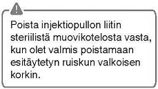 Älä koske injektiopullon liittimen luer-aukkoon, jotta se ei kontaminoidu.