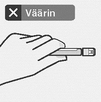 Pidä kiinni ruiskun kärjessä olevasta valkoisesta renkaasta.