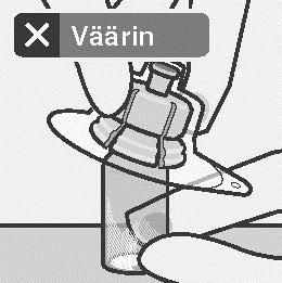 Älä paina injektiopullon liitintä vinoon, sillä liuotinta voi tällöin vuotaa siirron aikana injektiopullon ohi.