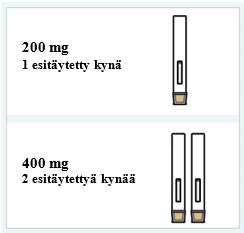 - 200 mg:n annos annetaan 4 viikkoa kolmannen aloitusannoksen jälkeen ja sen jälkeen 4 viikon välein.