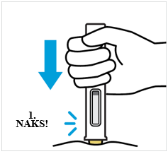Aseta esitäytetty kynä kohtisuoraan pistoskohtaan. Paina sitten esitäytettyä kynää ja pidä se ihoa vasten painettuna.
