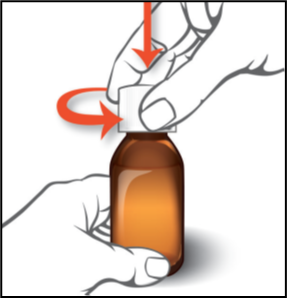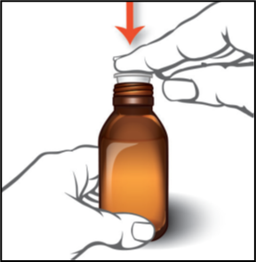 2. Irrota pullon turvasuljinkorkki painamalla korkkia alas ja kääntämällä samalla korkkia vastapäivään. |