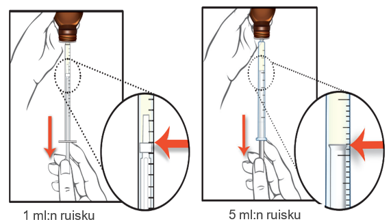 - Jos annoksesi on yli 1 ml (100 mg), käytä suurempaa 5 ml:n ruiskua.